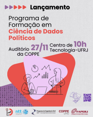 O Laboratório de Partidos, Eleições e Política Comparada (LAPPCOM/UFRJ), em parceria com o Núcleo de Transferência de Tecnologia (NTT/UFRJ), estão organizando o evento de lançamento do Programa de Formação em Ciência de Dados Políticos, uma ação de extensão desenvolvida no âmbito do projeto “Mapeando Votos, Recursos e Redes: A Inteligência Artificial a serviço da Análise Política”, financiado pela FAPERJ e apoiado pela COPPE. *No evento*, será lançado o relatório produzido pela primeira turma de 2025 e *serão abertas as vagas para a turma de 2026*.